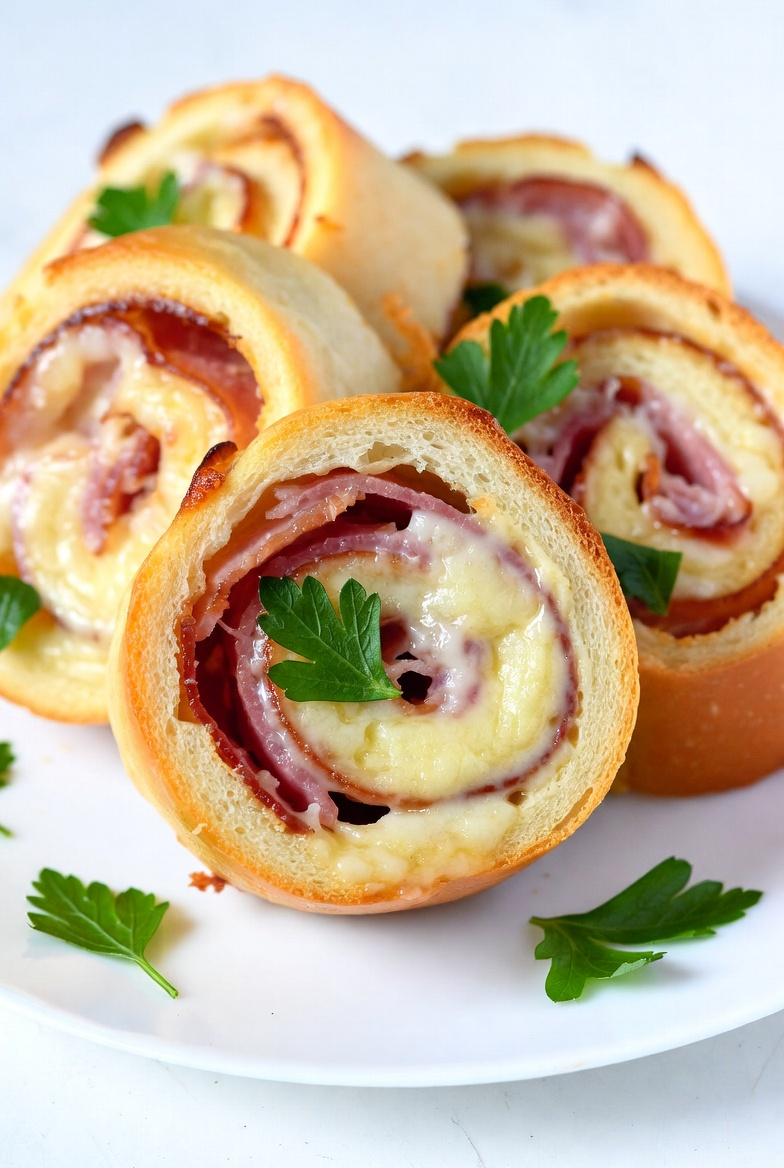 • Unroll pizza dough onto a cutting board, and shape into approximately a 18×13-inch rectangle. Top with ham and cheese slices.